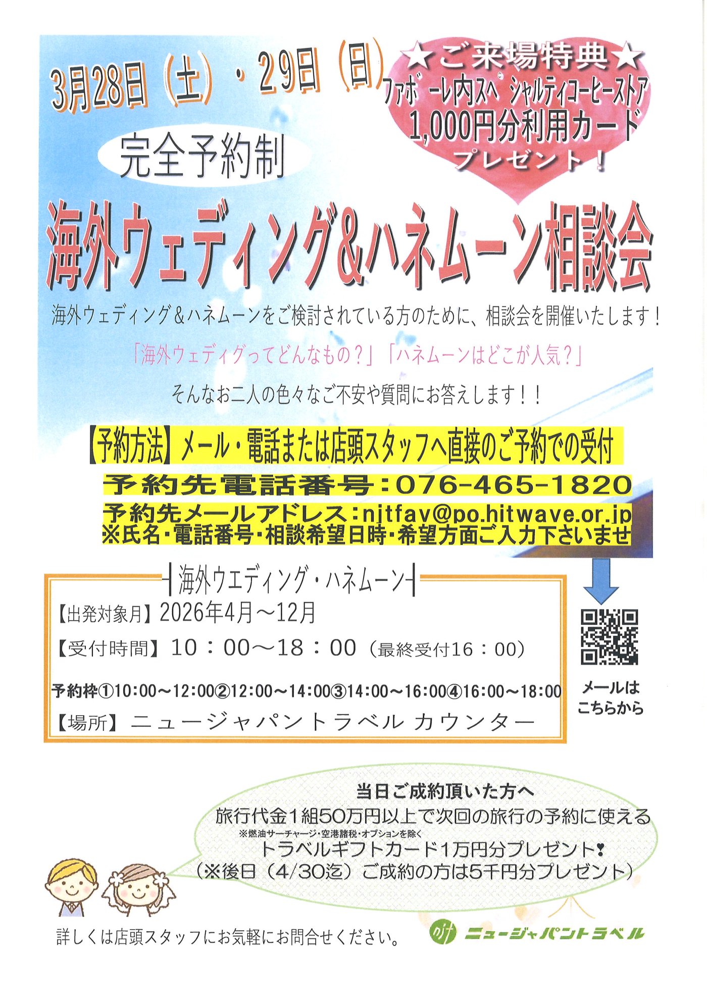 「ウェディング&ハネムーン相談会」を開催します!