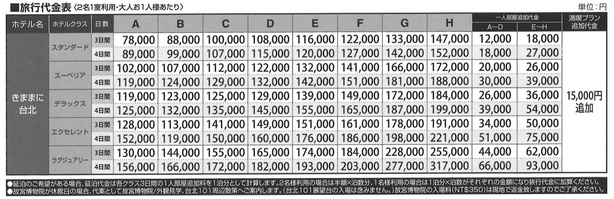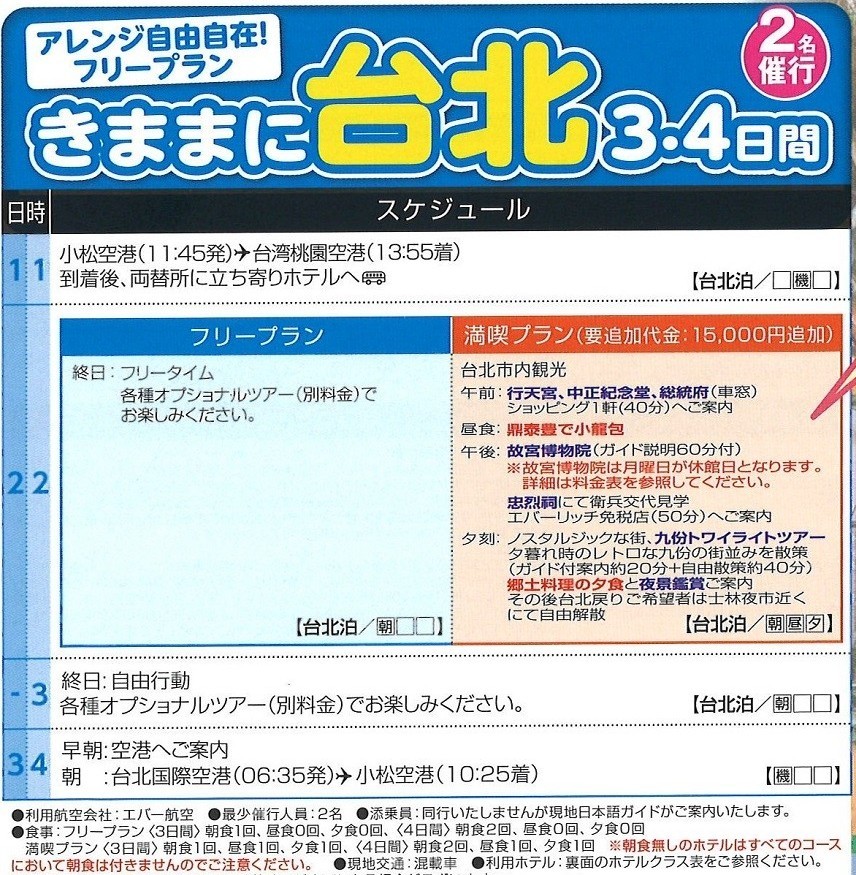 旅行期間:3~4日間
