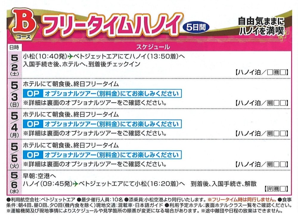 旅行期間:5/2(土)~5/6(水) 5日間