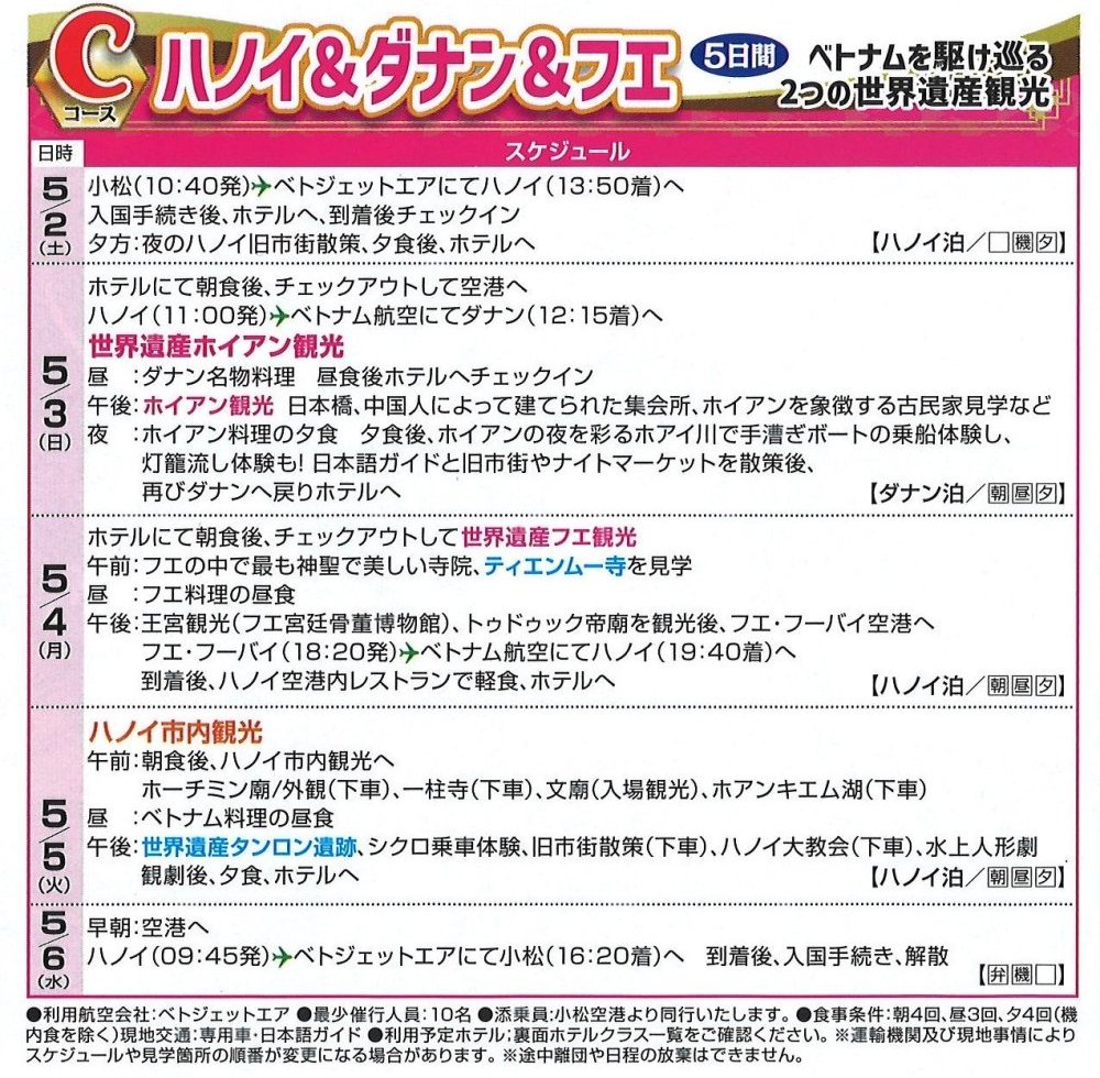 旅行期間:5/2(土)~5/6(水) 5日間